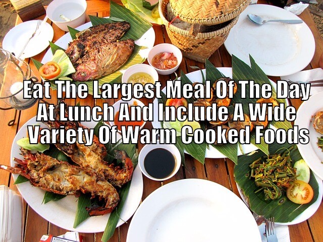 Rule 2. Eat the largest meal of the day at lunch and include a wide variety of warm, cooked foods.